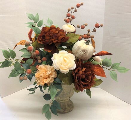 Beautiful silk arrangement in a ceramic pedestal vase. Approx. size: 20"W x 20"H. Local delivery only.