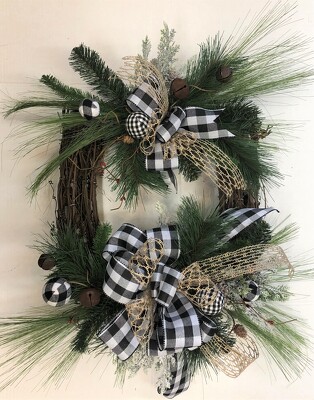 This beautiful wreath would be the perfect decoration for the front door. Approx. size: 22"W x 24"H diameter. Local delivery only.
